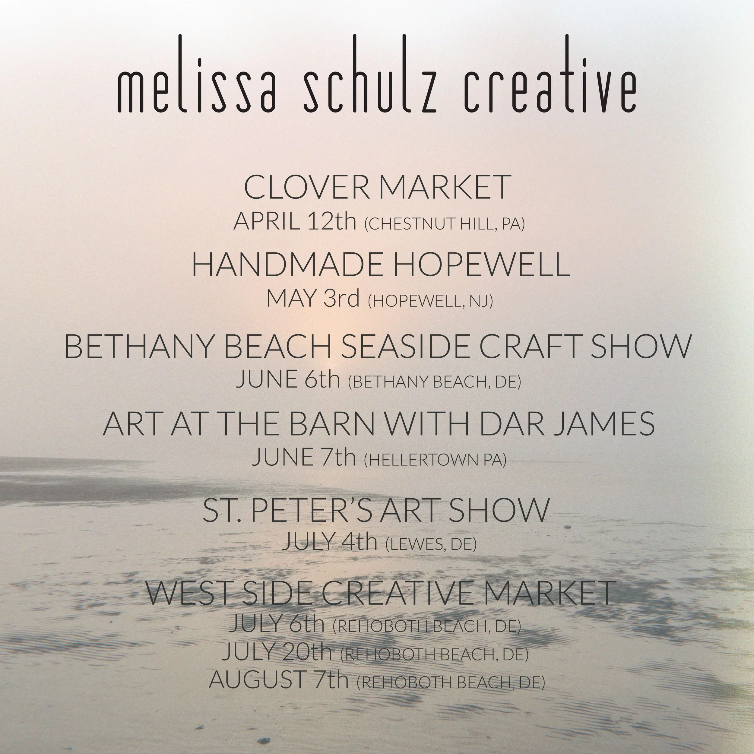 Spring/Summer 2026 Show Schedule Apr 11 Written By Melissa Schulz I hope to see you at one of my shows! Melissa Schulz